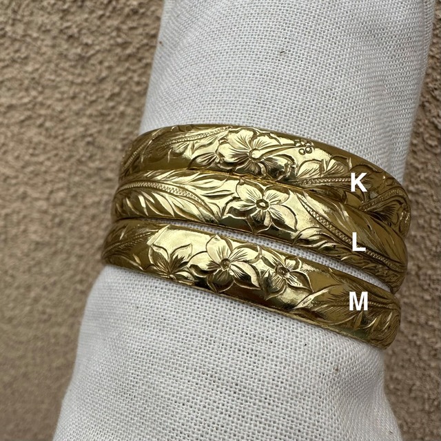 アウトレット品!! 手彫りのバングルです。 かなりお得な価格となっております。 2025年12月31日まで限定価格です。 真鍮、 セラミックコーティングをしております。 ★コーティングについて セラミッククリアー電着というコーティングを施しており、普通のシルバーと比べるとアレルギーの心配や酸化しての変色が少なくなっております。 また、シルバー金属の匂いもありません。 ★シルバーについて 国産老舗貴金属会社より純度99.9%の純銀ささ吹きを仕入れております。 そこから彫金、エングレービング、仕上げております。すべてにおいてCaribbean Jewelry の職人が行っております。 ★茅ヶ崎ジュエリーについて 製作はもちろんのこと、茅ヶ崎の海や自然の中でインスパイアされたエネルギーが込められていています。 茅ヶ崎はホノルルと姉妹都市関係にあり、ハワイアンジュエリーの技法やデザインなど良いところを取り入れています。 【素材】 真鍮 【大きさ】幅約9mm 厚み約1.8mm バングル部分14.5㎝ 開口30㎜ 【備考】素材の特性により、色や形、風合いなどが実際と若干異なる場合がございます。 予めご了承ください。