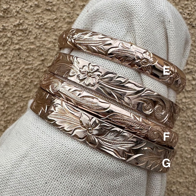 アウトレット品!! 手彫りのバングルです。 かなりお得な価格となっております。 2025年12月31日まで限定価格です。 ローズシルバー、 セラミックコーティングをしております。 ★コーティングについて セラミッククリアー電着というコーティングを施しており、普通のシルバーと比べるとアレルギーの心配や酸化しての変色が少なくなっております。 また、シルバー金属の匂いもありません。 ★シルバーについて 国産老舗貴金属会社より純度99.9%の純銀ささ吹きを仕入れております。 そこから彫金、エングレービング、仕上げております。すべてにおいてCaribbean Jewelry の職人が行っております。 ★茅ヶ崎ジュエリーについて 製作はもちろんのこと、茅ヶ崎の海や自然の中でインスパイアされたエネルギーが込められていています。 茅ヶ崎はホノルルと姉妹都市関係にあり、ハワイアンジュエリーの技法やデザインなど良いところを取り入れています。 【素材】 ローズシルバー 【大きさ】幅約9mm 厚み約1.2mm バングル部分14㎝ 開口30㎜ 【備考】素材の特性により、色や形、風合いなどが実際と若干異なる場合がございます。 予めご了承ください。