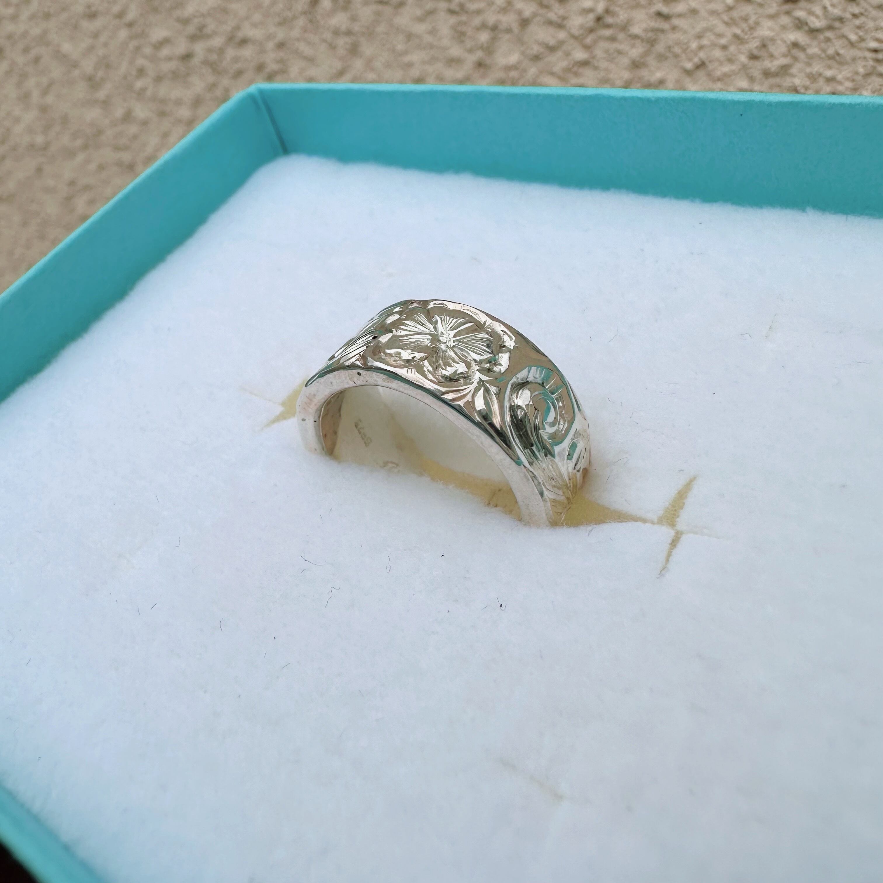 贅沢なシルバー925手彫りのリングです。