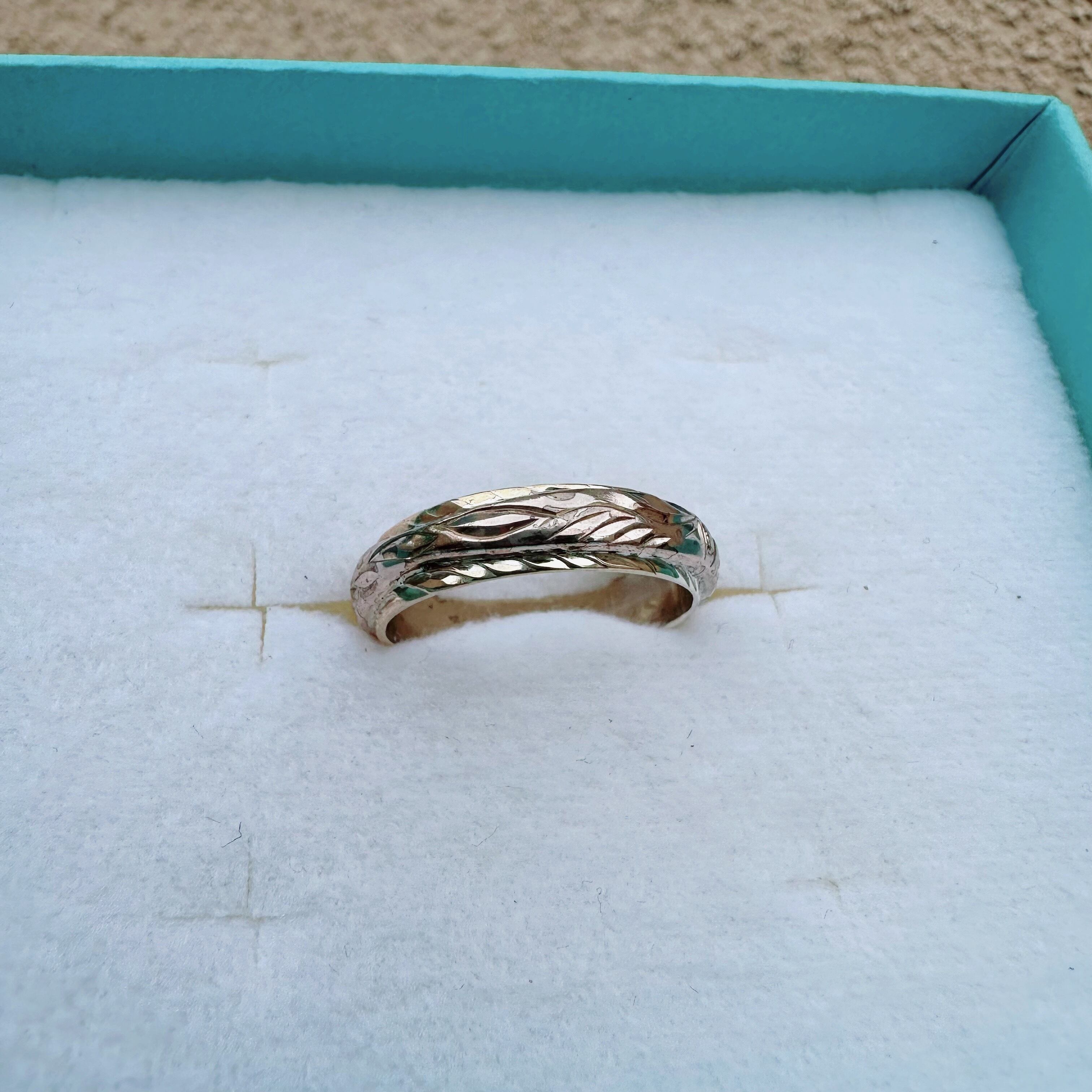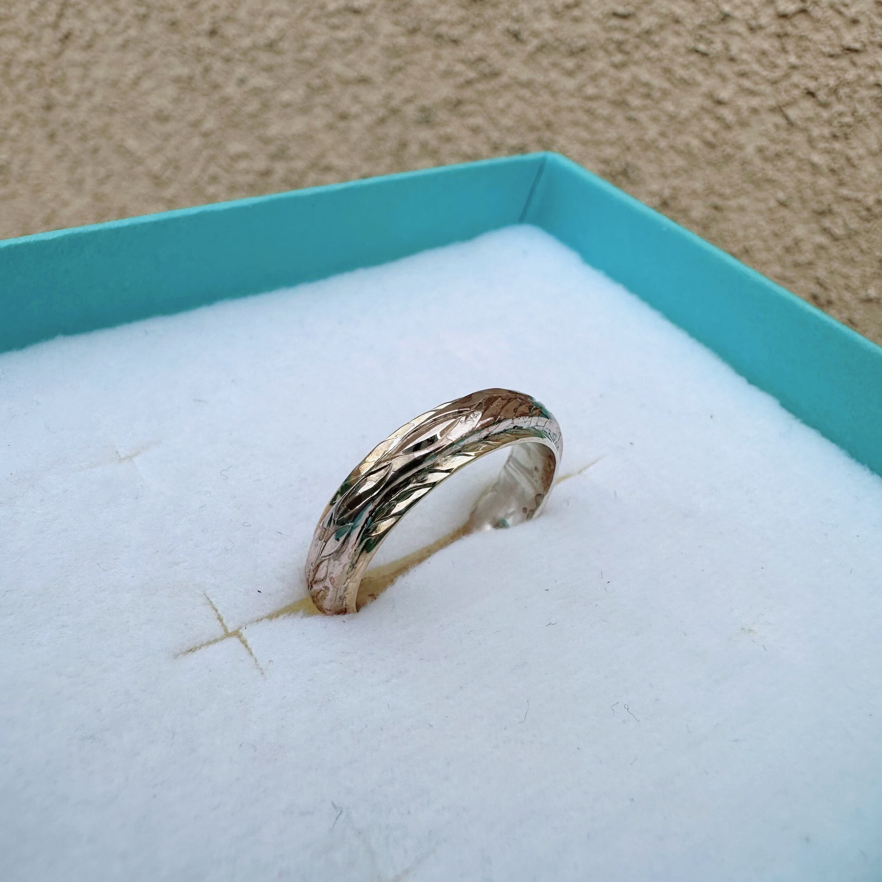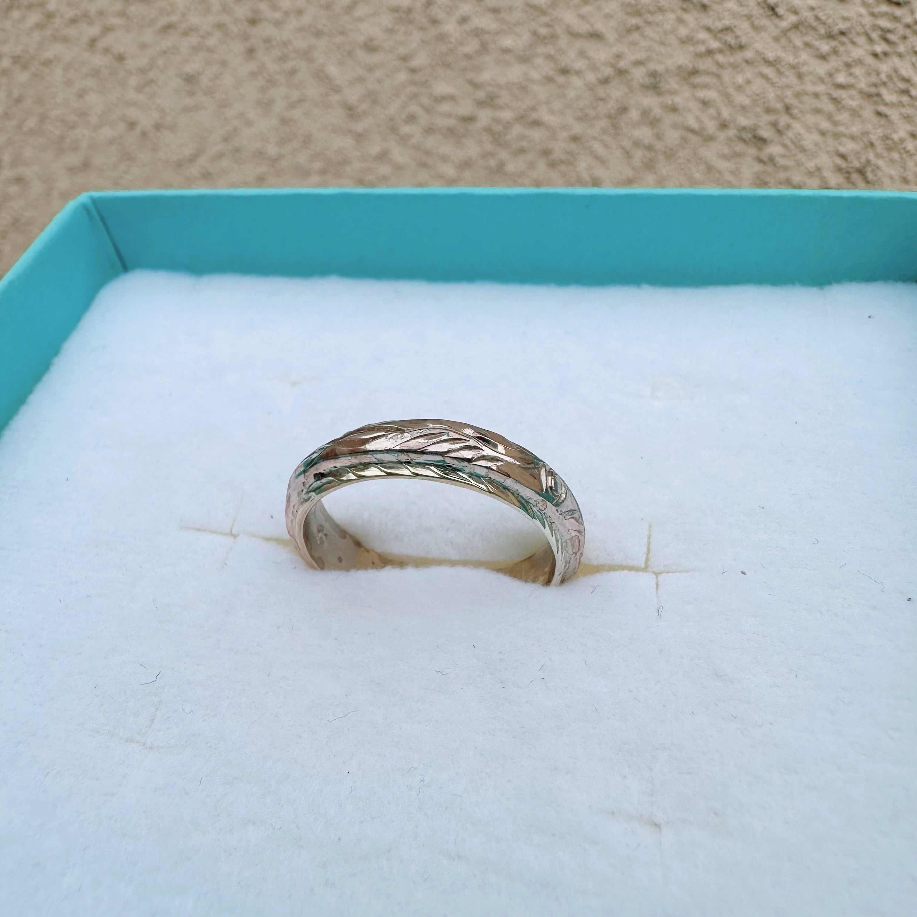 贅沢なシルバー925とピンクシルバーの手彫りのリングです。
