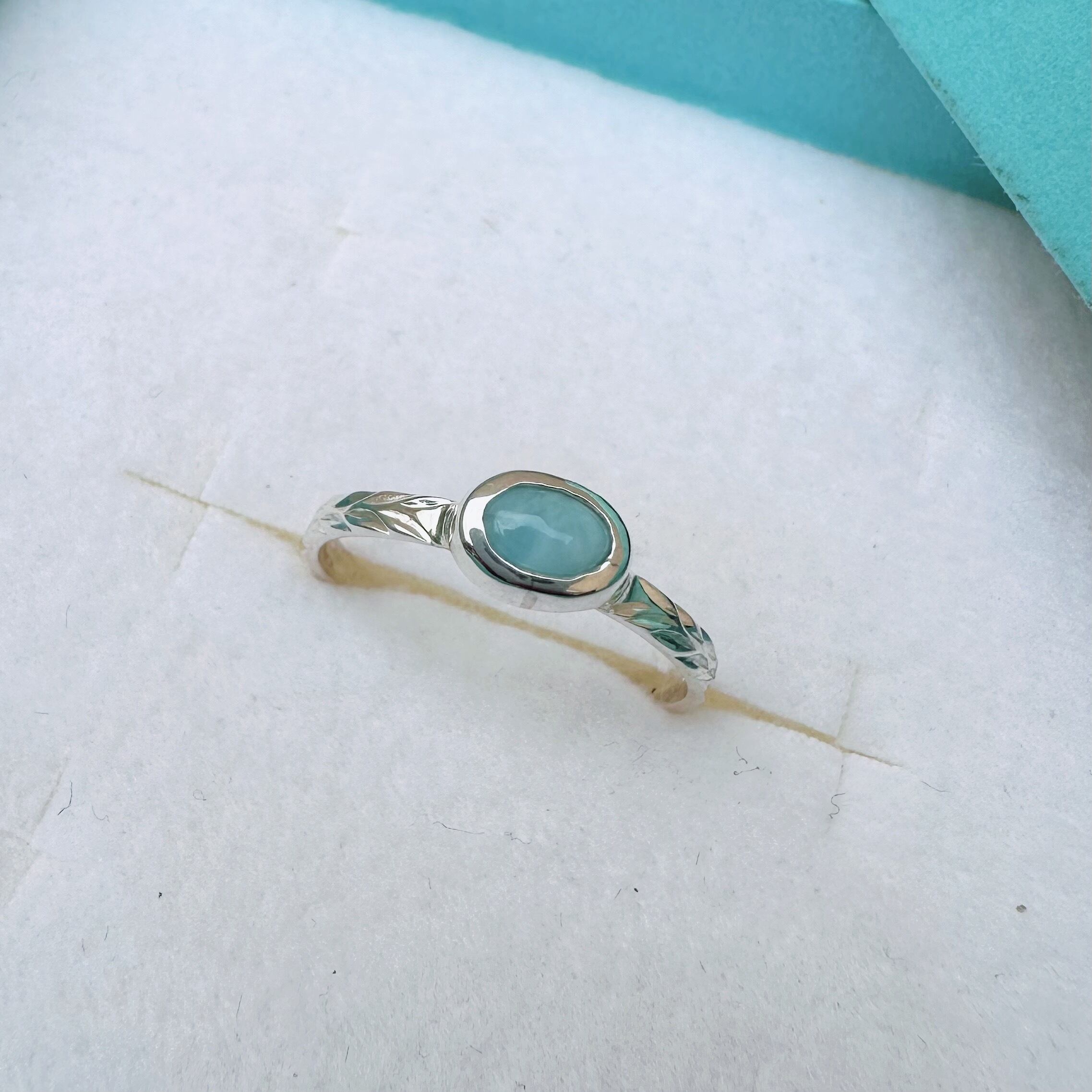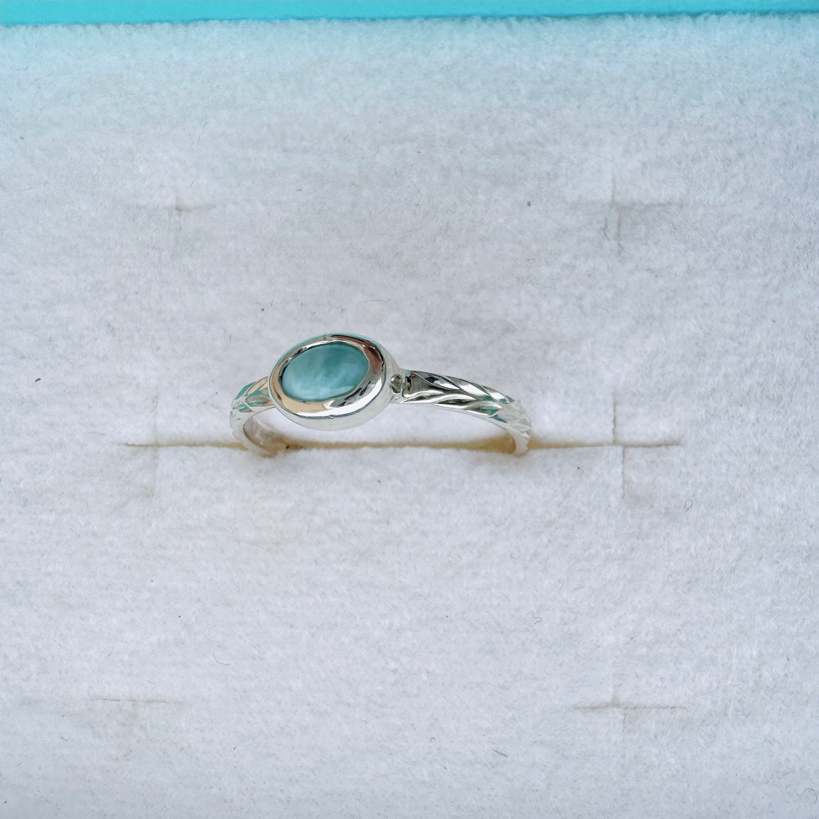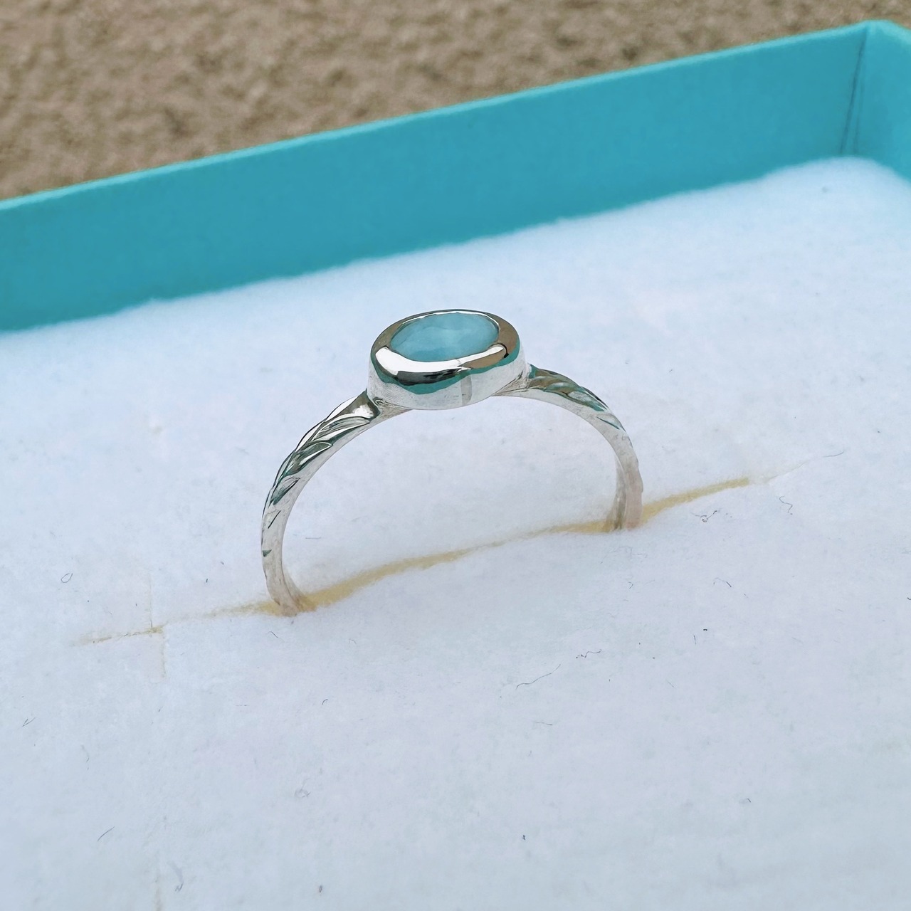 贅沢なシルバー925ラリマーの手彫りリングです。