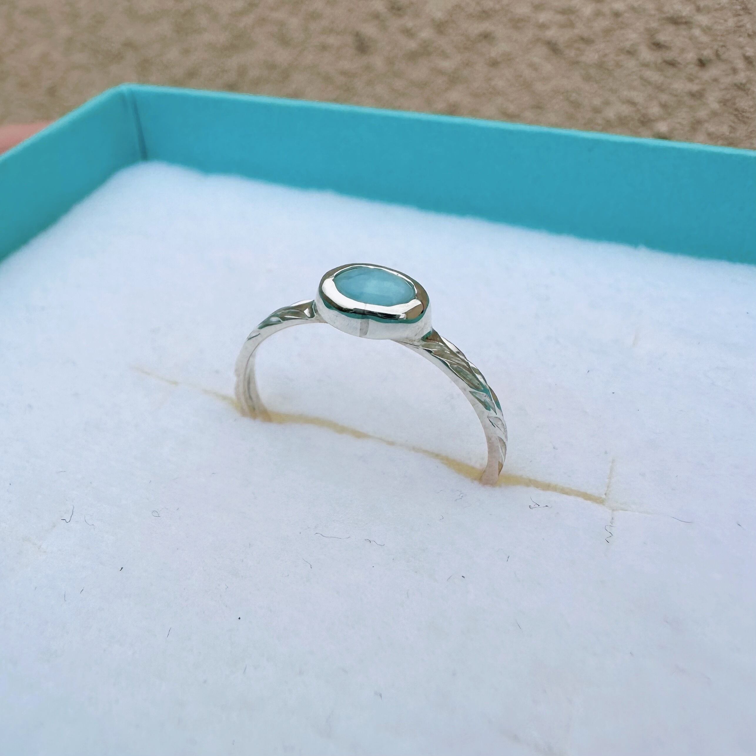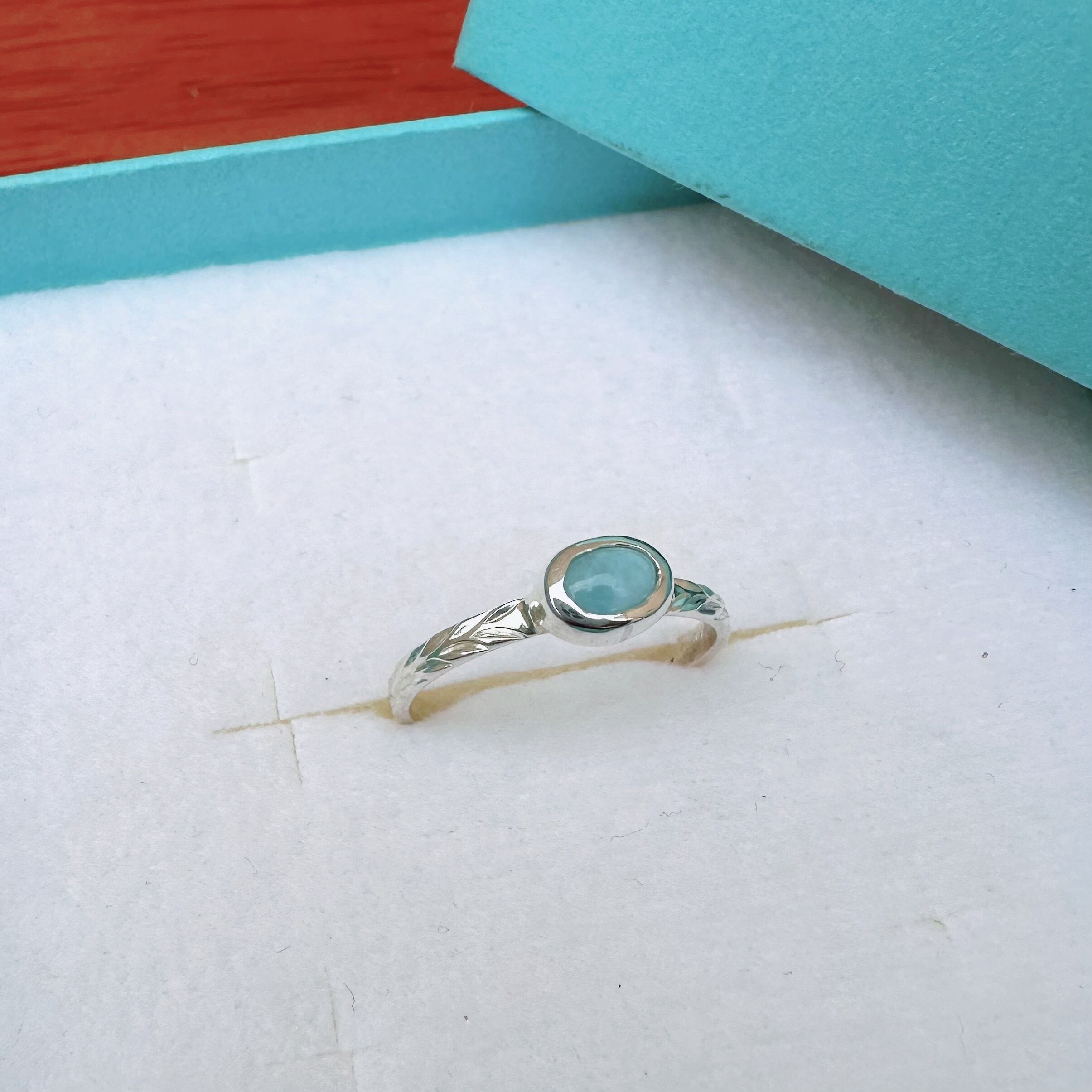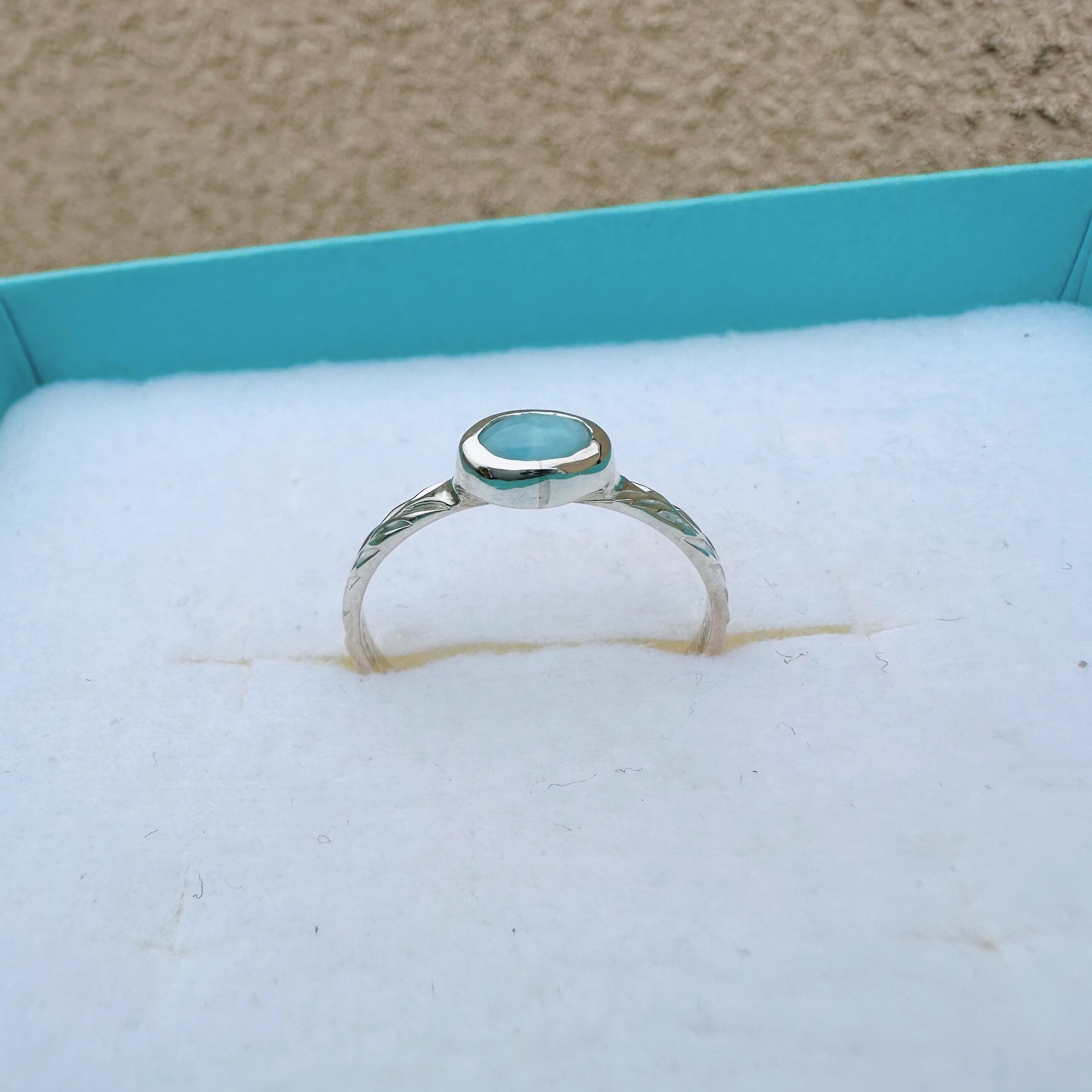 贅沢なシルバー925ラリマーの手彫りリングです。