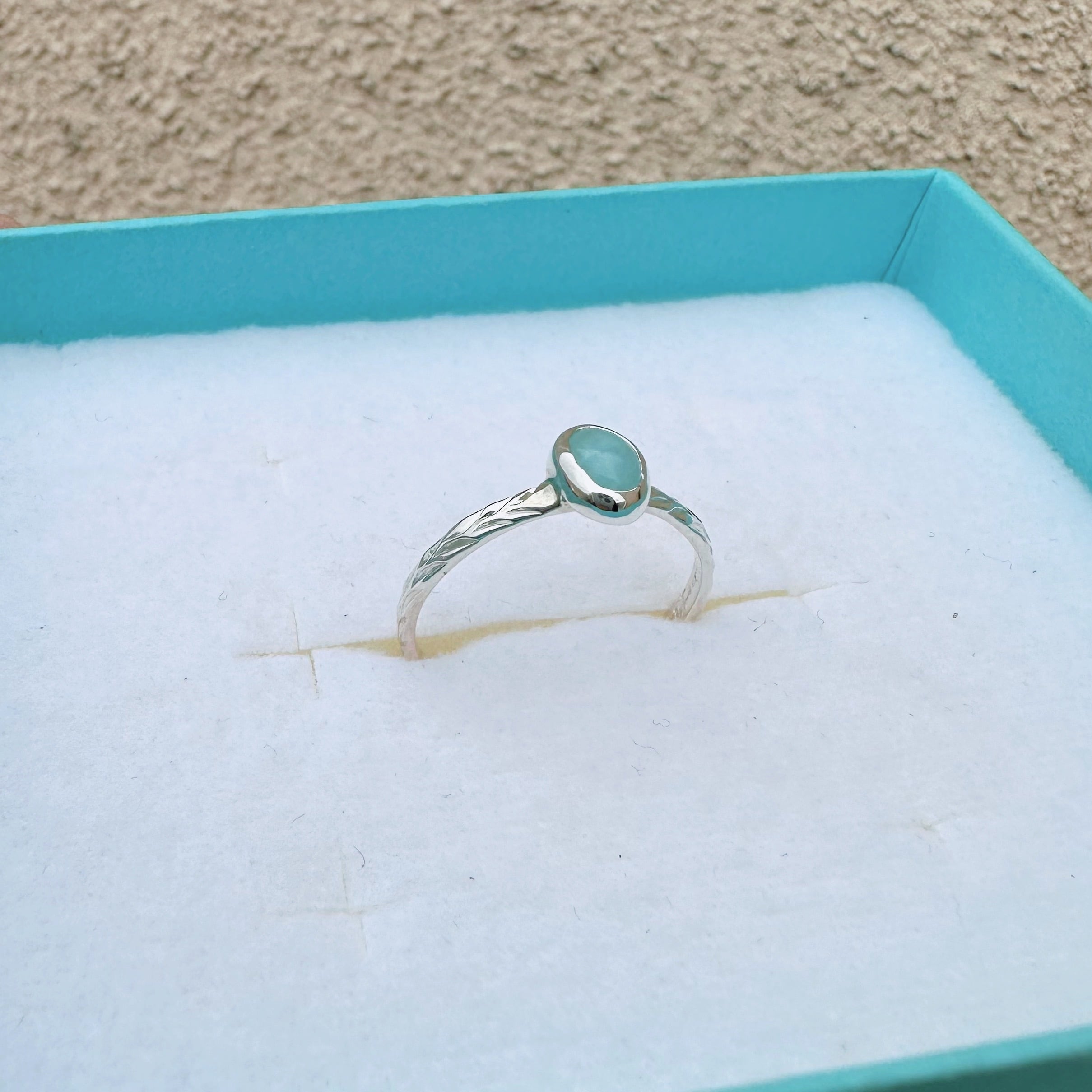 贅沢なシルバー925ラリマーの手彫りリングです。