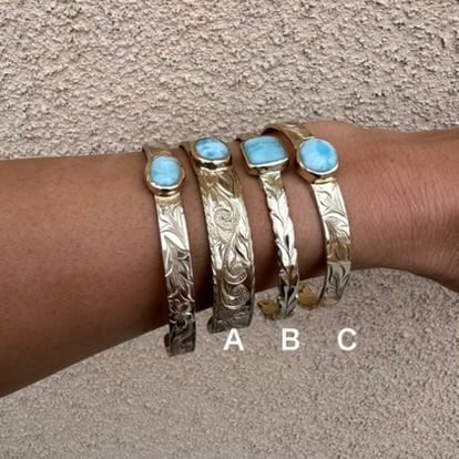 ラリマー手彫りのバングルです。